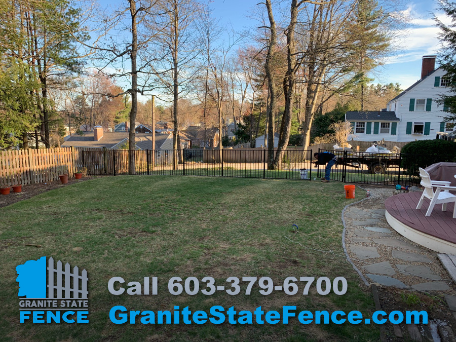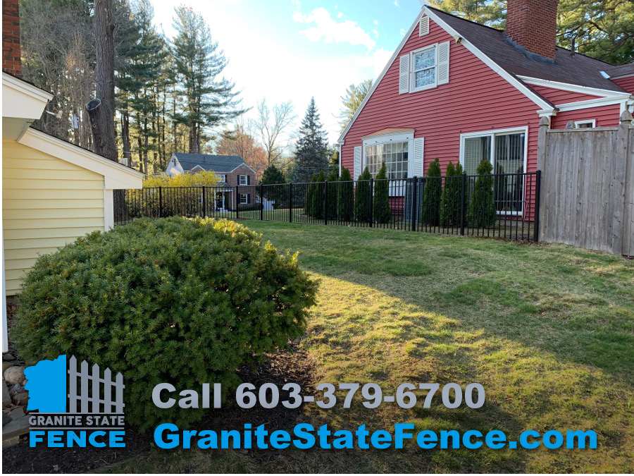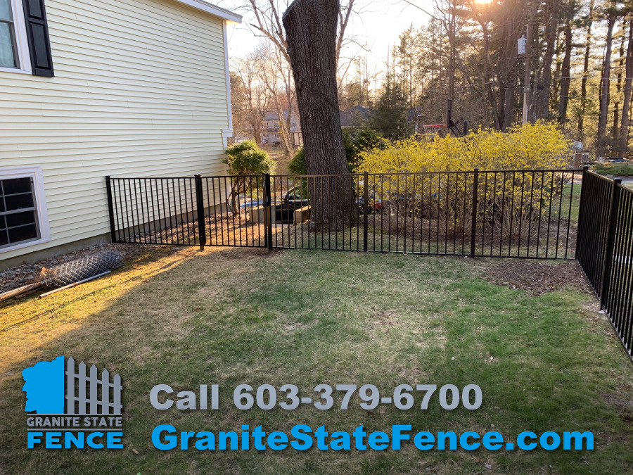 Our customer needed to keep their dog safely in the yard in Nashua, NH. We chose to use a 2 rail 48” tall black aluminum fence to prevent escape!