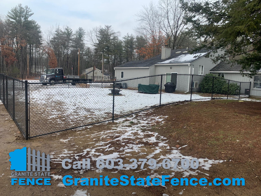 The crew installed black 5’ chain link fencing with bottom rail for this property in Amherst, NH.