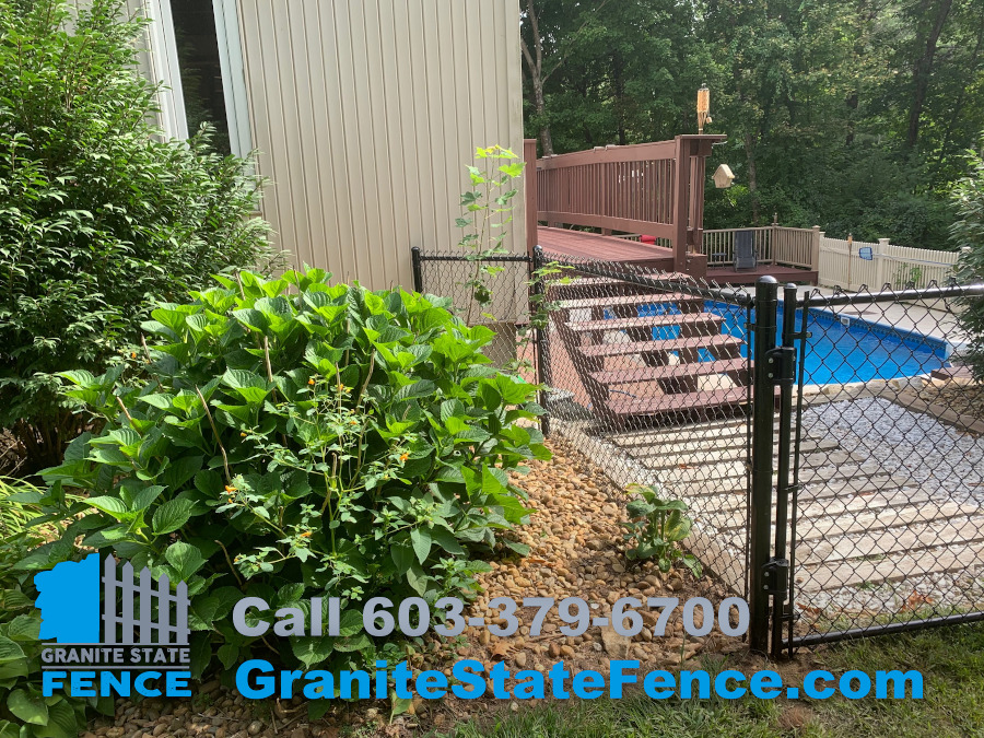 We installed black 4′ chain link fencing to safely enclose this pool in Londonderry, NH.