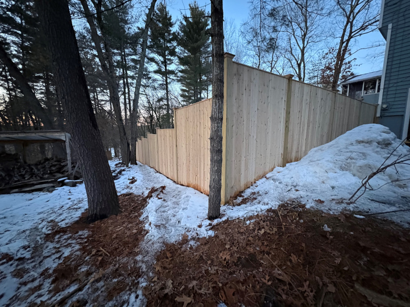 Granite State Fence completed this custom cedar fencing project in Nashua, NH, creating both privacy and a clean, natural look that blends beautifully with the surrounding landscape.
