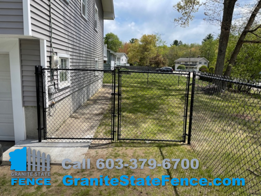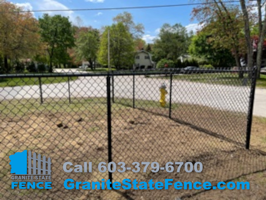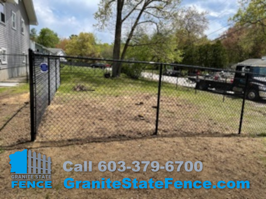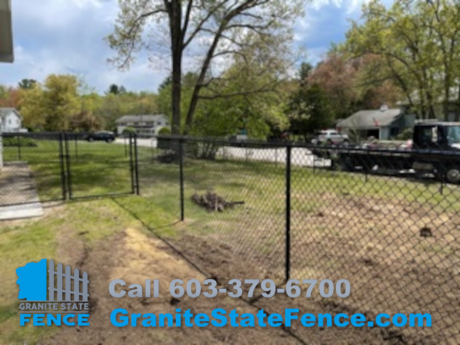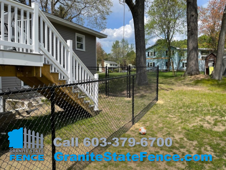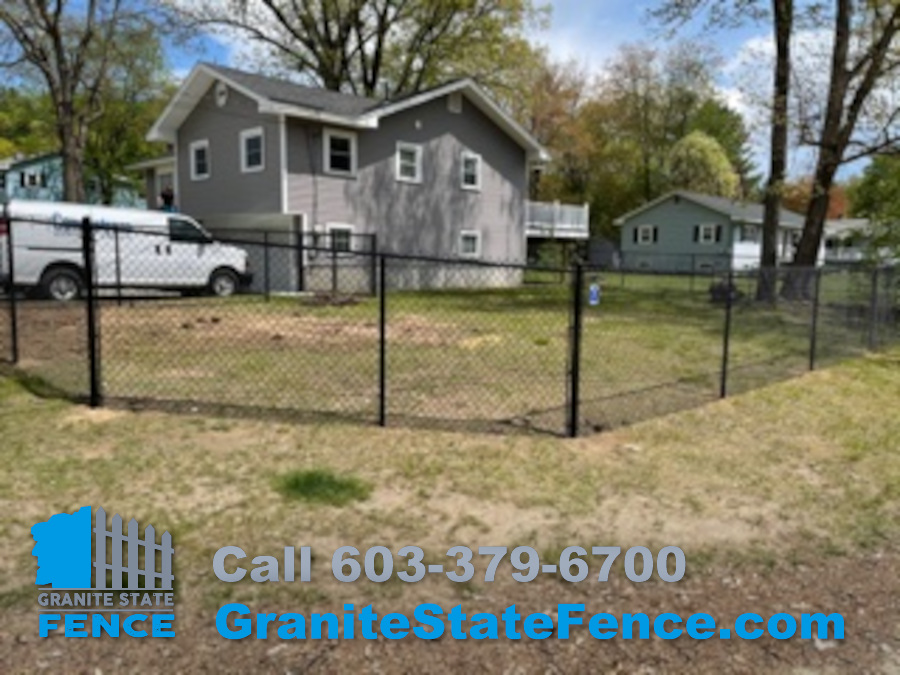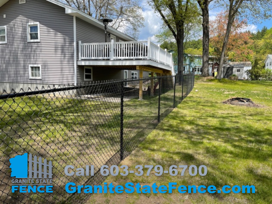 At this residence in Hudson, NH, the crew installed 5’ tall black vinyl coated chain link fencing.