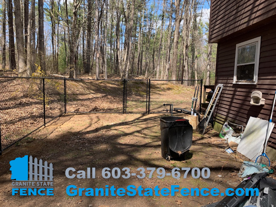 Our new client, in Brookline, wanted to create a dog kennel for their new rescue, so we installed 6’ black chain link with a bottom rail support on the backside of their house for a large puppy running area!
