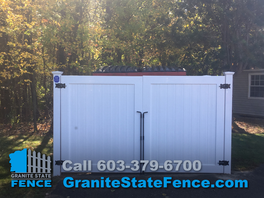 Dumpster Fence/ Vinyl Fence in Hudson NH Granite State Fence installed this Vinyl Fence to safely enclose this dumpster