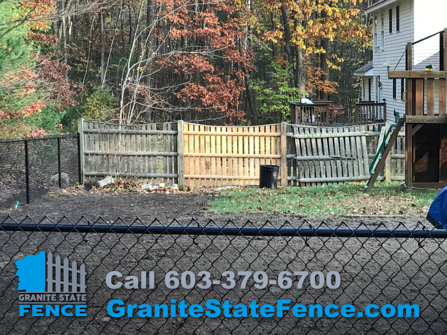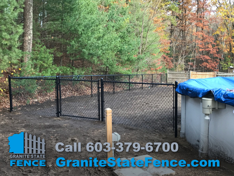 The Crew installed a new Four foot Black Chain Link Pool Fence with a Four foot Swing Gate. We also replaced a Four Foot Panel with Cap on an existing Wood Picket Fence that had rotted