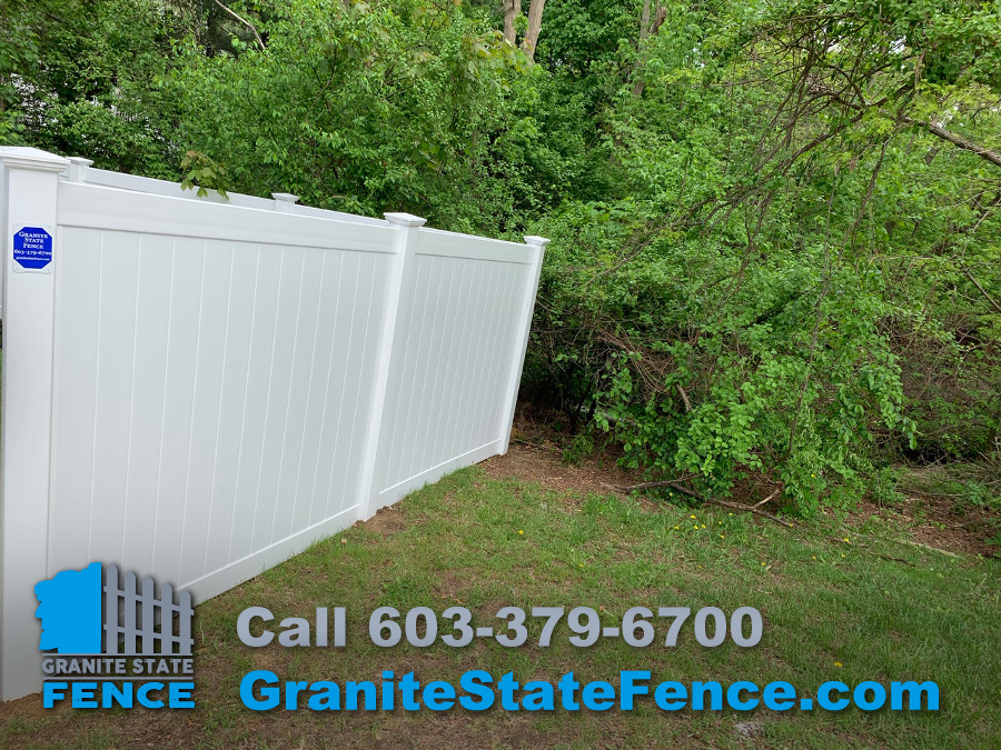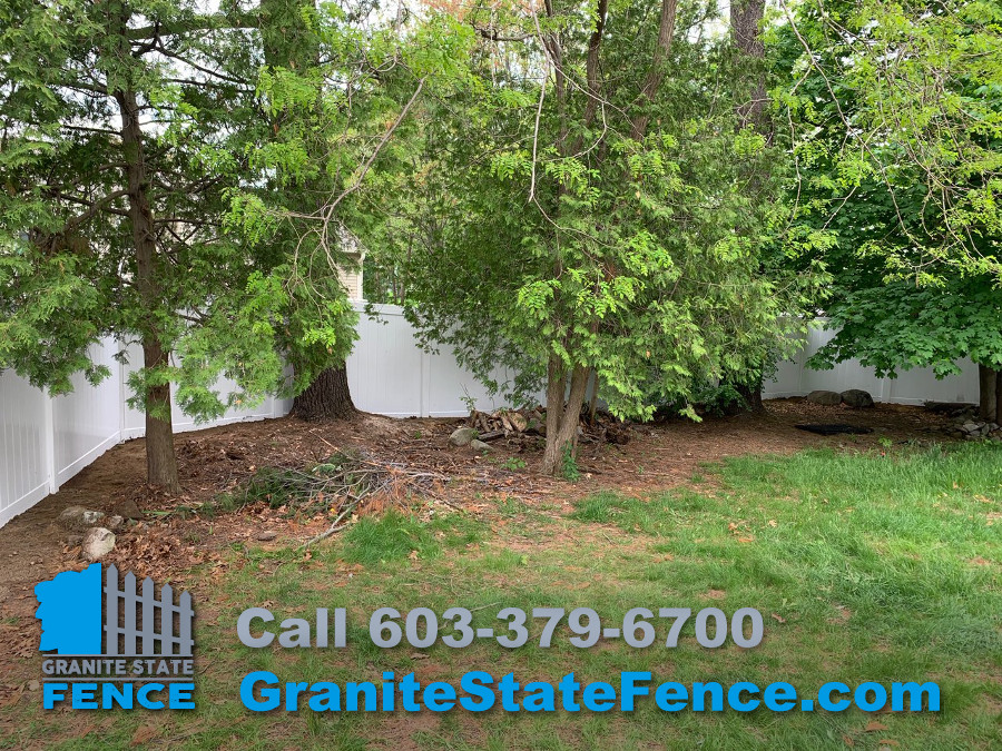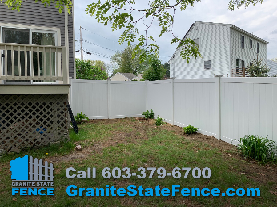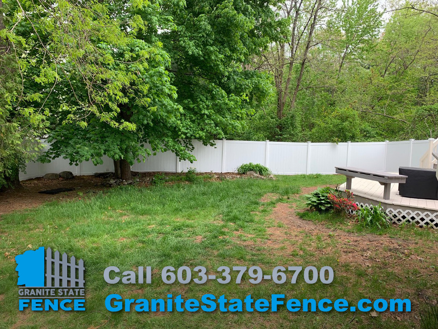 Our professional fence installers took down an old pressure treated picket fence and installed a new 6’ privacy vinyl fence in Nashua, NH.