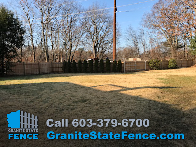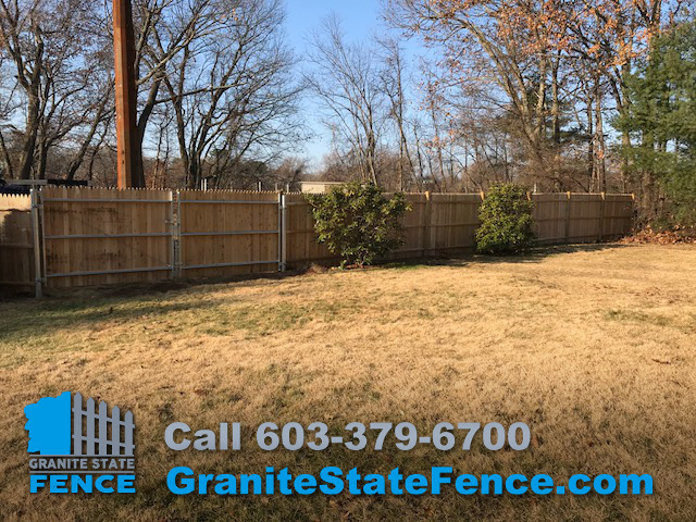 Granite State Fence is a full service Fencing Contractor. The crew installed Cedar Picket Fencing with a Sixteen Foot, Double Drive Metal Reinforced Gate over the driveway.