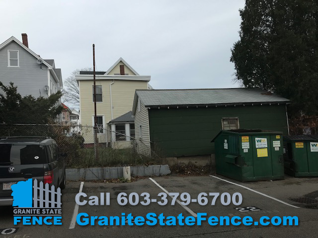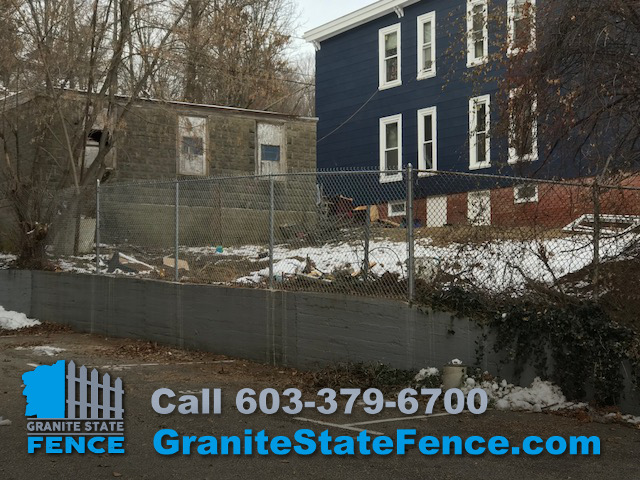Granite State Fence is a full service Fencing Contractor. A tree fell and damaged an existing Chain Link Fence behind a commercial building. We repaired and replaced the damaged sections.