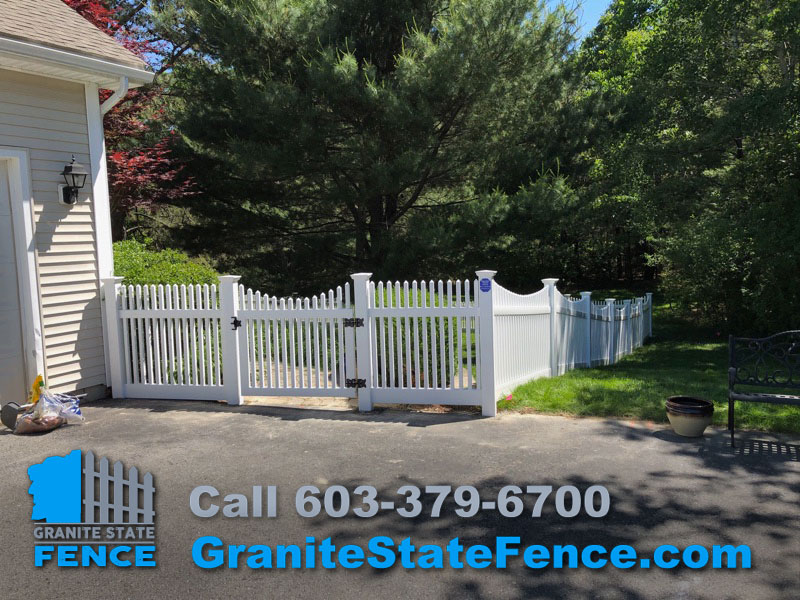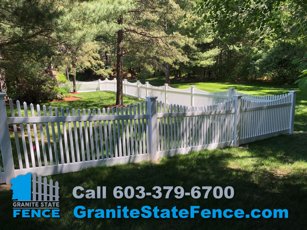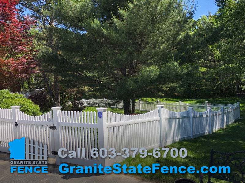 Granite State Fence is a full service residential and commercial fencing contractor. Our crew completed installation in Windham, NH of 4’ white scalloped victorian vinyl picket fencing to enclose the backyard.