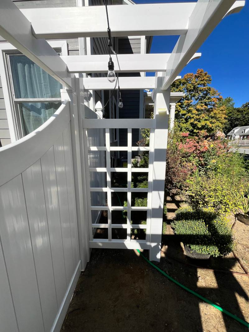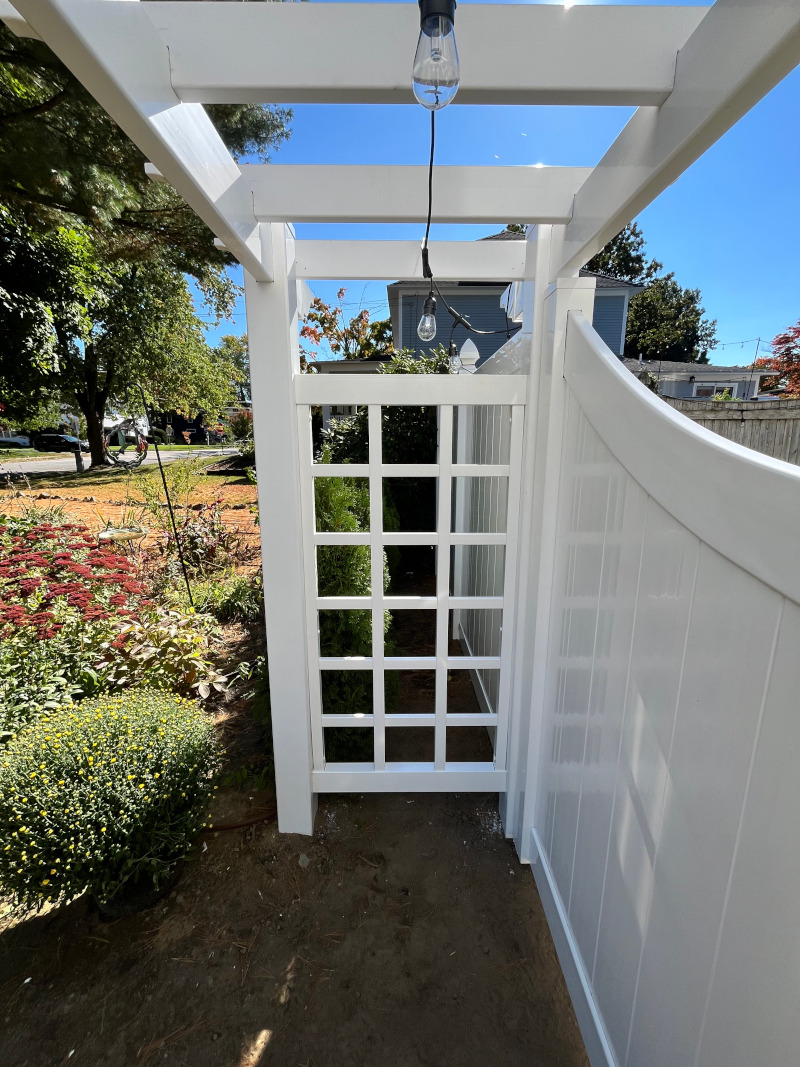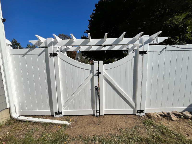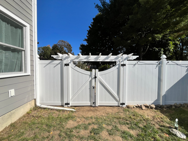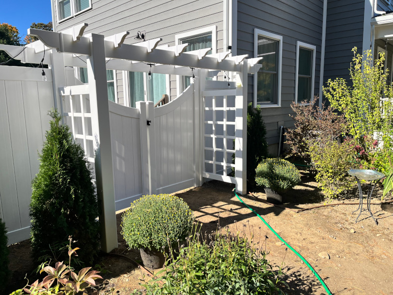 For this project in Nashua, NH, Granite State Fence installed a white vinyl fence with an attached pergola. With our many years of experience, quality craftsmanship and customer satisfaction, you can be confident that the professionals at Granite State Fence Company will surpass your expectations for all your fencing needs. To experience friendly, personable customer service, and to have your job completed to the highest standard, contact Granite State Fence today for your free estimate
