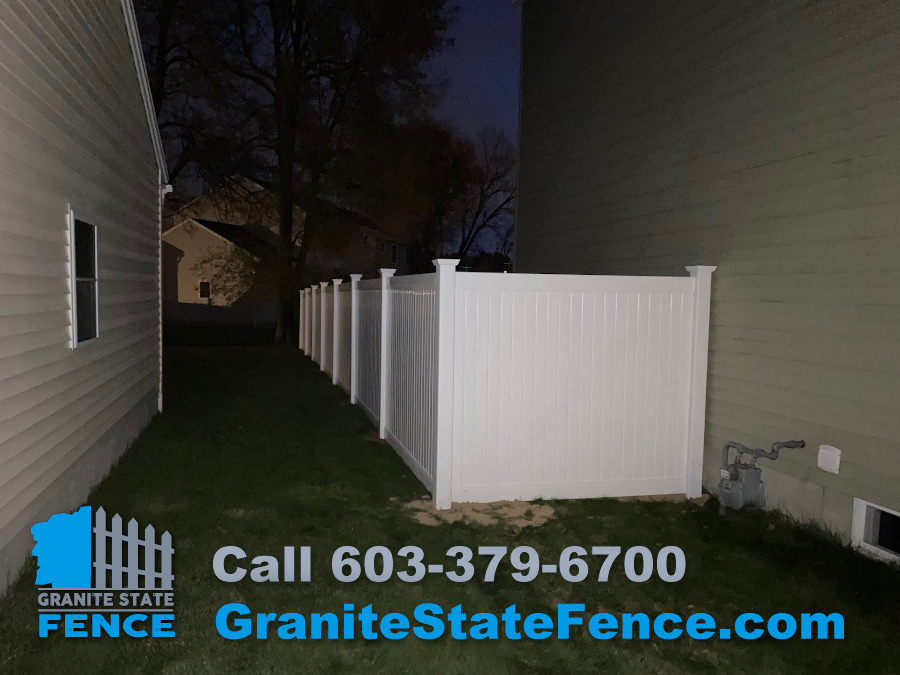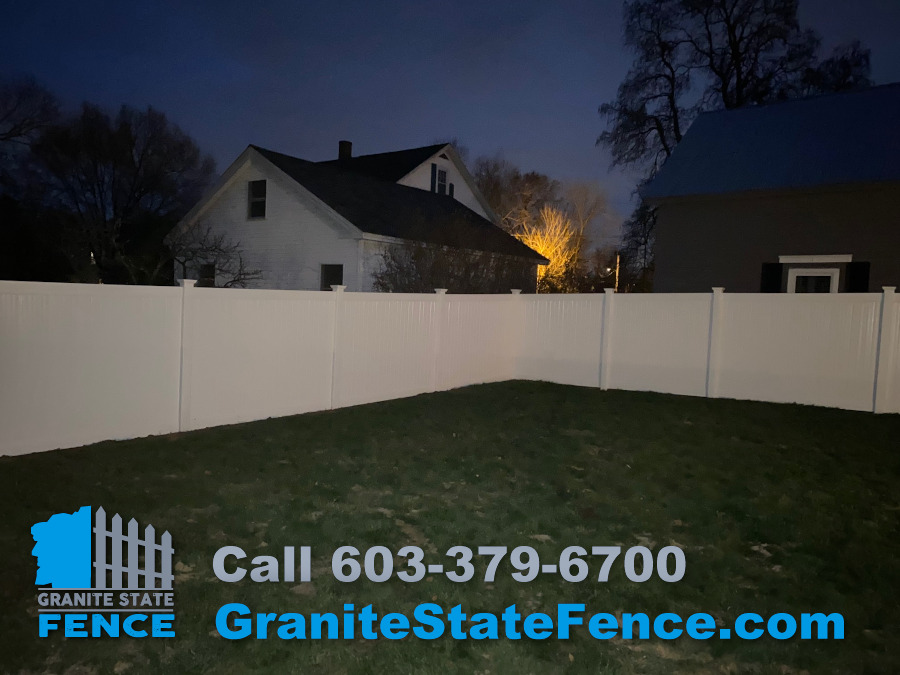 We finished up a little after dark tonight doing a 6’ white vinyl privacy fence install in Nashua, NH!